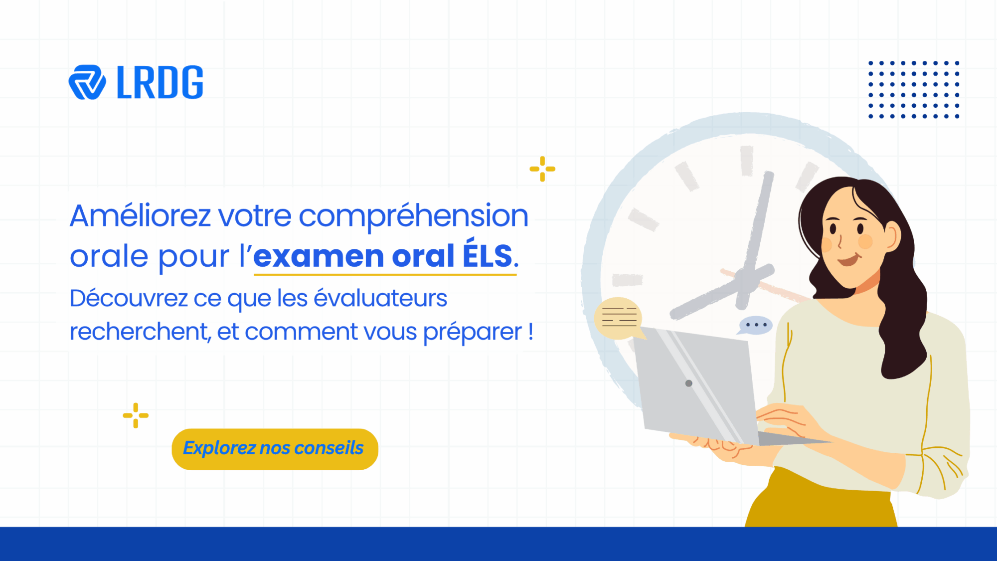 LRDG offre des simulations orales qui reproduisent fidèlement le format de l’ÉLO, y compris les types de questions, le rythme et les attentes des évaluateurs.