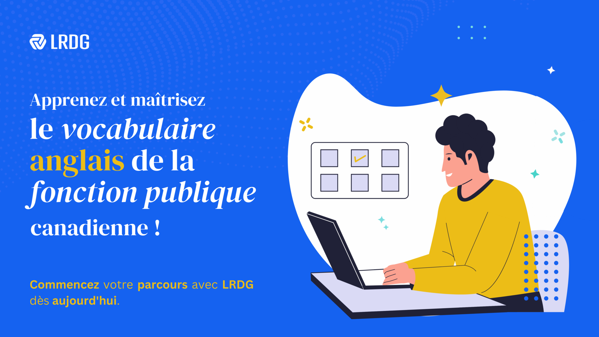 Réservez un appel avec LRDG dès aujourd’hui et développez votre vocabulaire en anglais avec méthode, soutien, et des ressources adaptées à votre carrière dans la fonction publique canadienne.